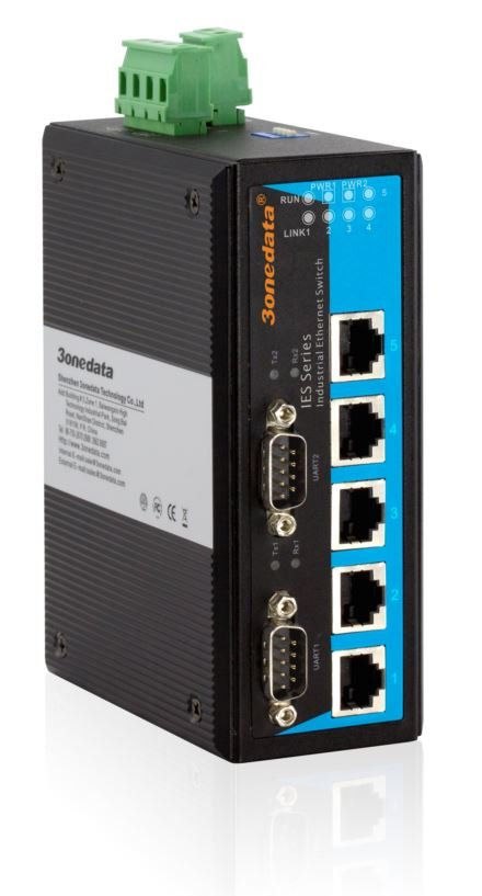 5 porte 10/100Base-T(X), 1 fiber SM + 2 RS232-porte