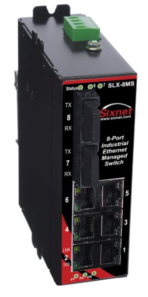 Sixnet 8-port managed switch med 2 singlemode fiber porte
