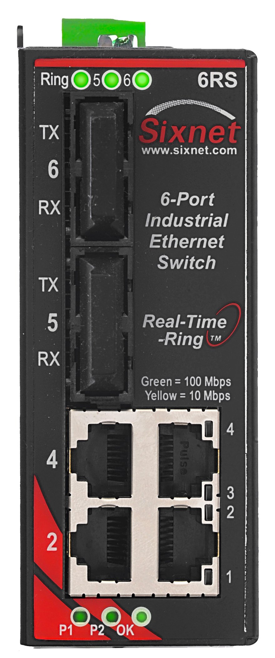 - 6 portar. 4 st RJ45 och 2 st multimode ST fiber