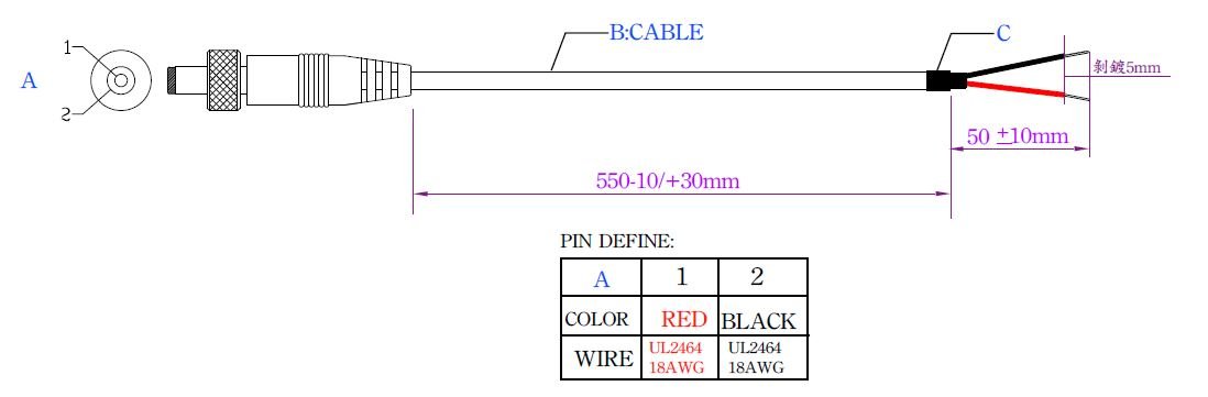 Strømkabel eBox100, 2,5mm DC STRØMKABEL 550mm