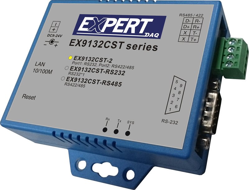 2-ports seriel til Ethernet konverter. Med DB9 og skrueterminal på 485 og 422.